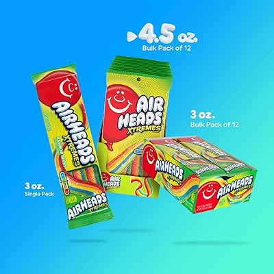 Each pack of airheads xtremes sweetly sour rainbow berry belt candies bursts with the fruity, tangy sweetness you love in a chewy, soft texture that's fun to eat. Airheads xtremes sweetly sour candy, 4.5 oz, helps you to get the flavor you want for snack time. You see, to get to that yummy fruit chew, you've gotta go through a whole lot of sour. Each pack of airheads xtremes sweetly sour rainbow berry belt candies bursts with the fruity, tangy sweetness you love in a chewy, soft texture that's fun to eat. Airheads xtremes belts sweetly sour candy, halloween treat, rainbow berry, non melting, bulk movie theater and party bag, 3 oz (pack of 12) 3 ounce (pack of 12) 4.8 out of 5 stars 5,103 In the meantime, here are some reviews from our past customers sharing their overall shopping experience.
